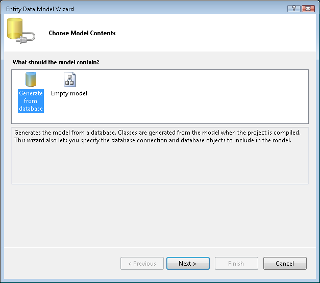 حالا با توجه به این که ما می خوایم از پایگاه داده ی آماده، فایل رو ایجاد کنیم، گزینه ی Generate from database رو انتخاب کنید و به مرجله ی بعد برید:
